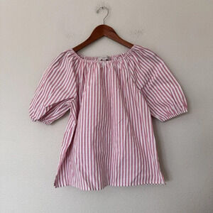 LOFT Off The Shoulder Puff Short Sleeve Blouse Top Striped Pink White Small P