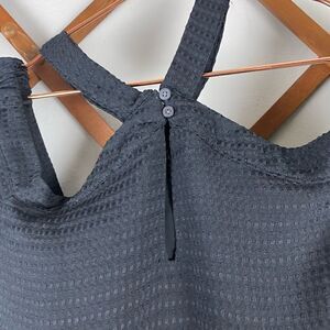 Textured halter neck off the shoulder top. Lightweight. Button closure at the back.