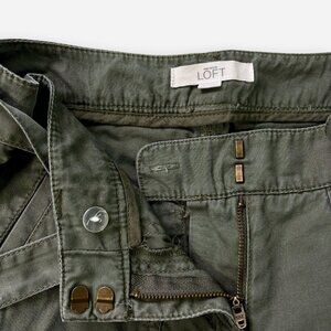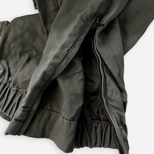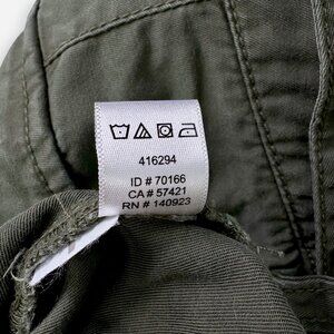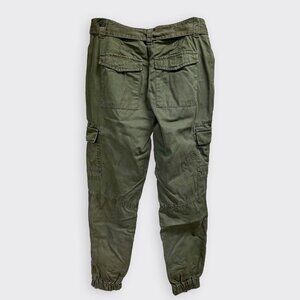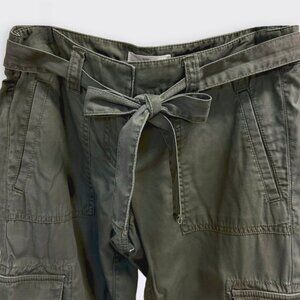 Stylish olive green ankle pants. Features cargo pockets and a tie waist. Perfect for casual wear.