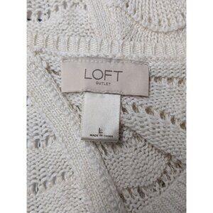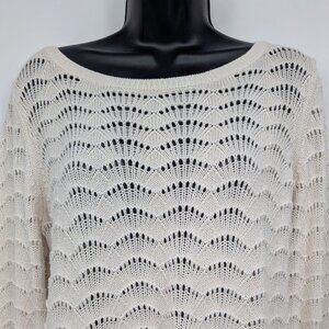 LOFT Open Back Knit Sweater Size L Pullover Scalloped Romantic Coquette Feminine