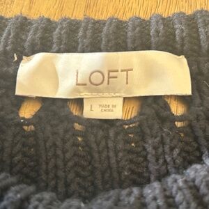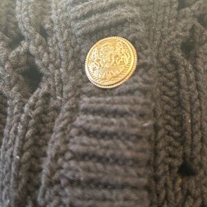 Excellent condition black cotton blend cardigan. Open knit (crochet) w/gold buttons.