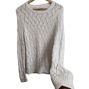 LOFT sweater, cable knit sweater, women's off-white sweater, cozy winter sweater, rayon wool blend sweater, rabbit hair sweater, soft knit sweater, medium size sweater, crew neck sweater, women's fall fashion