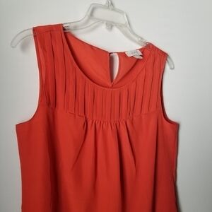 LOFT Orange Sleeveless Pleated Top Blouse with Tie Size M
