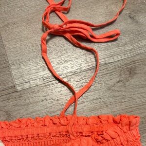 Vibrant orange tank top. Features adjustable straps. Lightweight and stylish.