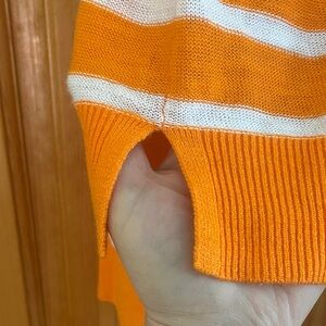 Vibrant orange and white stripes button up cardigan. Great layering piece.