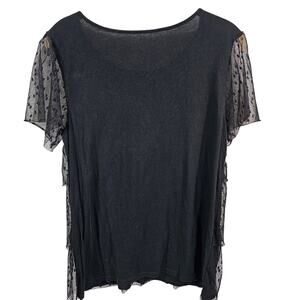 LOFT Outlet Black Cotton and Lace Tiered Mesh Top Women's Small