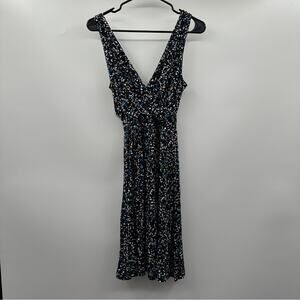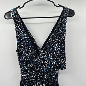 LOFT Outlet Black, White & Blue Geometric Print Sleeveless Faux Wrap Dress Sz XS