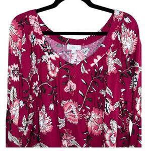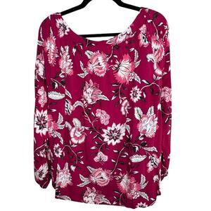 LOFT Outlet Blouse Womens XXL Red/Pink Floral Balloon Sleeves V-Neck Blouse