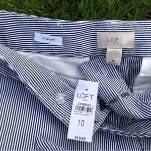 LOFT Outlet Blue and White Striped 4” Chino Shorts with Tie Belt Size 10 Cotton