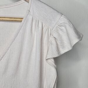 LOFT Outlet Bone White Flutter Sleeve Blouse Soft Cotton Poly Blend Size Medium