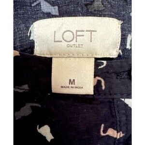 LOFT Outlet Cat Print Blouse | Women’s M Navy Rayon Button Front Cottagecore Top