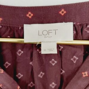 LOFT Outlet Crimson Brown Red Dots Pattern Tunic Women Top Blouse P1641
