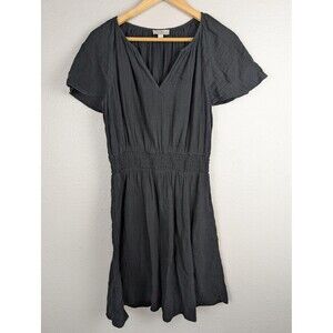 LOFT Outlet Dress Womens Small Black Short Sleeve V Neck 100% Cotton Boho Casual