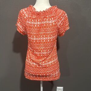 LOFT outlet Vibrant Coral Ikat Print 100% Cotton Top