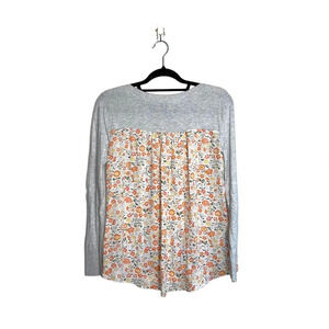 LOFT Outlet light gray contrast floral back sweater. In excellent condition! Boat neckline. Long sleeves. Contrast blouse back. Cream with orange & green floral print. Light gray color. Size xsmall.