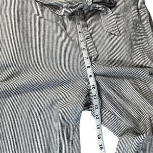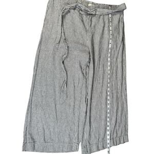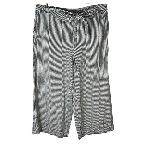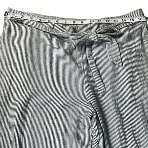 LOFT Outlet Linen Blend Wide Leg Crop Pants Large Blue White Stripe Tie Waist
