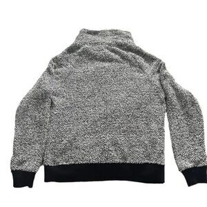 Cozy meets chic with this LOFT Outlet Women’s Lounge Cuffed Sweater in size Medium. Worn once, this super-soft pullover features a black and white knit design with solid black cuffs and wrist bands for a modern, elevated look. Perfect for lounging, casual days, or layering over your favorite jeans.