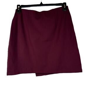 LOFT Outlet Medium Mini Skirt Faux Wrap Pull-On Stretch Elastic Waist Dark Wine
