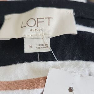 LOFT Outlet NWT white, tan, black striped dress, flowy & sleeveless, size M