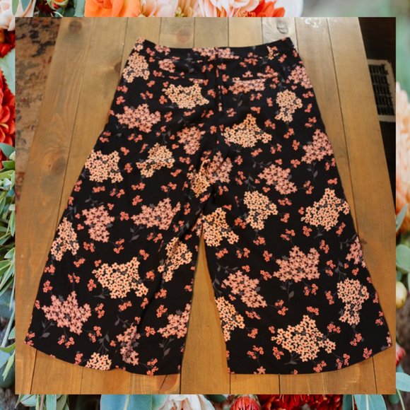 LOFT Size 8 Petite Wide Leg Floral Capris. Slant front pockets, back pockets and belt loops. Hook and button closure. 21” inseam. These capris are in great used condition. Only worn a few times; bought with good intentions and then never really wore them, and now they don’t fit.