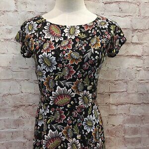 LOFT Outlet Petites Black Floral Dress Stretch Jersey Knit Short Sleeve 2P NEW