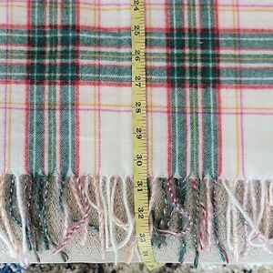 LOFT Outlet Plaid Cream Green Red Pink Fringe Hem Winter Scarf