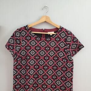 LOFT short sleeve mini sheath dress with a round neck, and a back zipper closure. This diamond print dress is in excellent condition (no stains, no rips, or damage and comes from a smoke and pet-free environment).