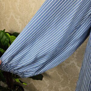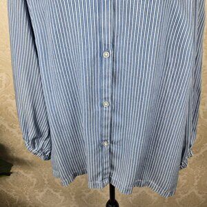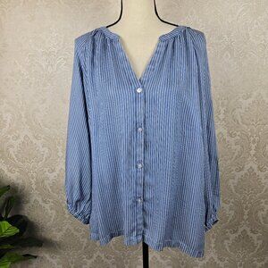 LOFT Outlet Size XL BLue White Vertical Stripe Blouse Button Front Long Sleeve