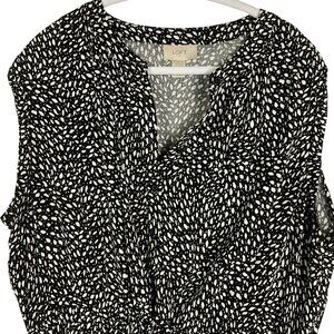 LOFT Outlet Sleeveless, Drawstring Waist Dress, Black/White print, XL, rayon