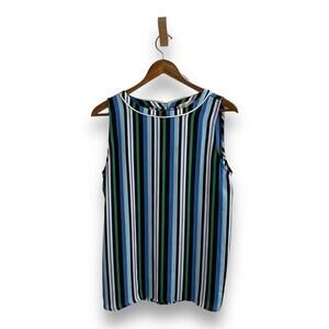 LOFT Outlet Stripe Sleeveless Blouse Blue Green Size M NWT