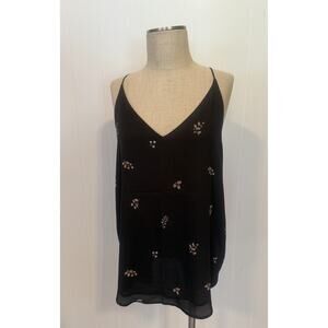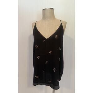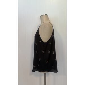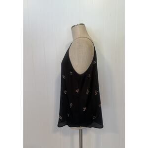 LOFT Outlet Tank Top Womens Large Black Floral Embroidered Sleeveless Blouse