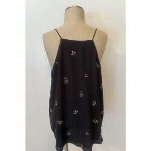 LOFT Outlet Tank Top Womens Large Black Floral Embroidered Sleeveless Blouse NWT