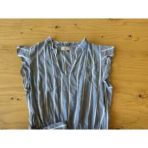 LOFT Outlet V-Neck Dress Womens Small Flutter Sleeve Blue Ivory Stipes