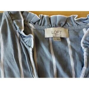 LOFT Outlet V-Neck Flutter Sleeve Womens Small Blue Ivory Stipes Fit & Flare Dress. 100% Rayon