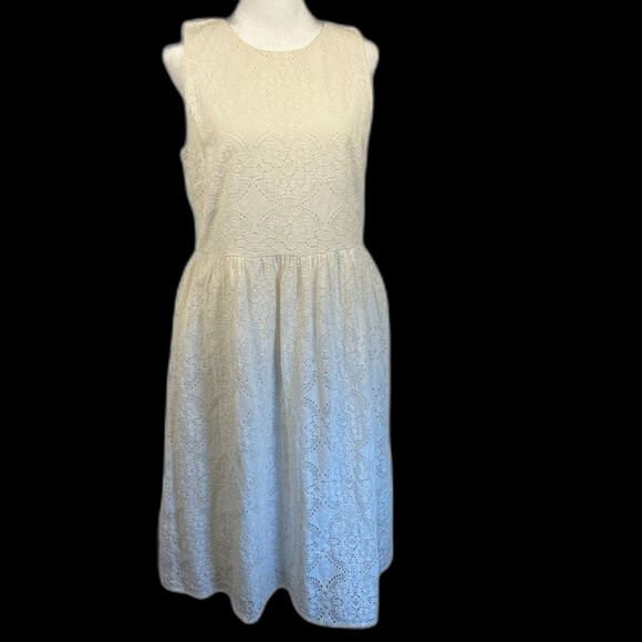 LOFT Outlet Wht Eyelet Lace Wms Dress Sz 8 Fully Lined, Sleeveless 100% Cotton