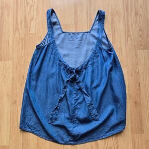 LOFT tank top, petite chambray top, tie back summer shirt, small petite denim top, lyocell tank top, LOFT Outlet top, scoop neck casual top, sleeveless denim look, minimalist blue blouse, petite chambray tank