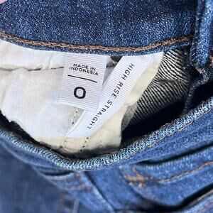 LOFT Outlet Women’s High Rise Straight Dark Wash Raw Hem Cropped 0