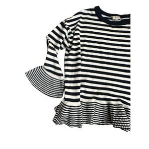 LOFT Outlet Women's Navy Blue & White Stripe Print Bell Sleeve Sweater Size XL