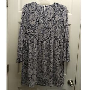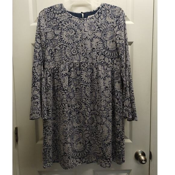LOFT Outlet Women's Size Medium Blue Paisley Floral Flare Sheer Sleeve Mini Dress