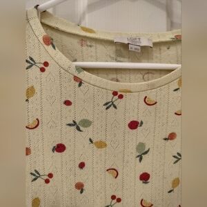 LOFT Outlet Yellow Multicolor Fruit Print Cotton Blend Short Sleeve Sleep Top XS