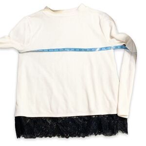 LOFT Outlet Light Sweater Winter White Cream Crew Neck Black Lace Hem Size Small