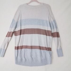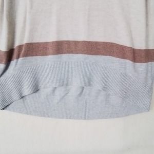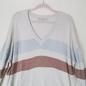 LOFT Oversized Ribbed V Neck Sweater Size Medium Blue, Beige, Brown Stripes