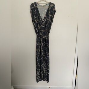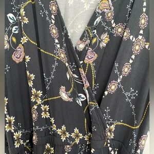 LOFT PLUS 14 Flower Chain Faux Wrap Maxi Summer Dress Gray Floral V-neck Office