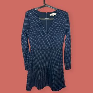 🔵 LOFT POLKA DOT JACQUARD LONG SLEEVE FIT&FLARE SKATER DRESS BLUE SIZE 2