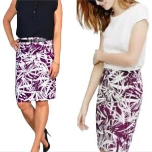 LOFT PURPLE AND WHITE Tropical VACATION RESORT Print Pencil Skirt Plus SIZE 16