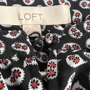 LOFT black/red/white paisley print long sleeve blouse pullover top in excellent condition. Keyhole neck with button clolsure. Size Small.