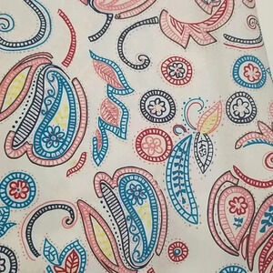 EUC: Beautiful Paisley Print Polyester Shift Dress. Multi-color: Teal, Peach Red, Yellow, White. 100% Polyester. Lined. Very light and flowy perfect for Summer. In excellent pre-loved condition.