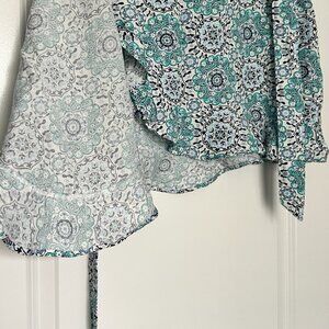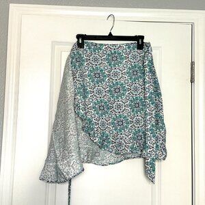 LOFT| Paisley Ruffle Wrap Skirt | Blue | Size: 6