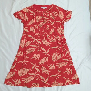 LOFT Palm Pintucked Side Tie Dress, Color Orange/Cream Size S