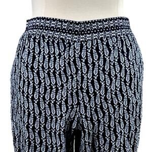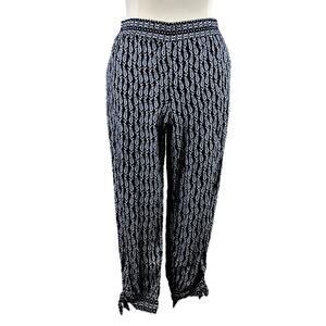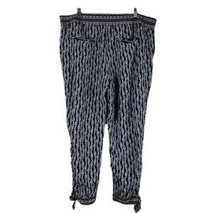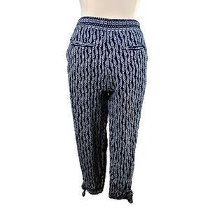 LOFT Pants Pull On Slim Fit Tie Ankles Navy White Print Women’s Plus Size 16